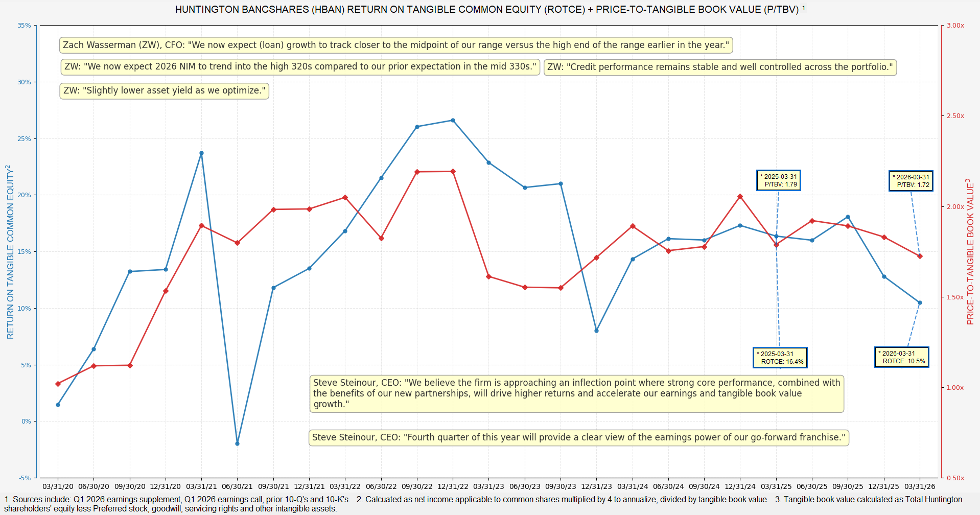 Harris Simmons, CEO, Q1 2026 earnings call: "People are looking for savings through technology. I came across just our headcount back in 2008. Now, that was 18 years ago. There's nothing magic about the year except that our headcount is down 20%. Back then, we were about a $54 billion company. You have to inflation-adjust that. But even with that, it's about a 25% improvement in productivity per $1 of real assets. AI is becoming a part of that. My view is AI, it's a new shiny object, but a lot of different technologies have led to improvement in productivity over the years. I think this has the promise of accelerating it somewhat."